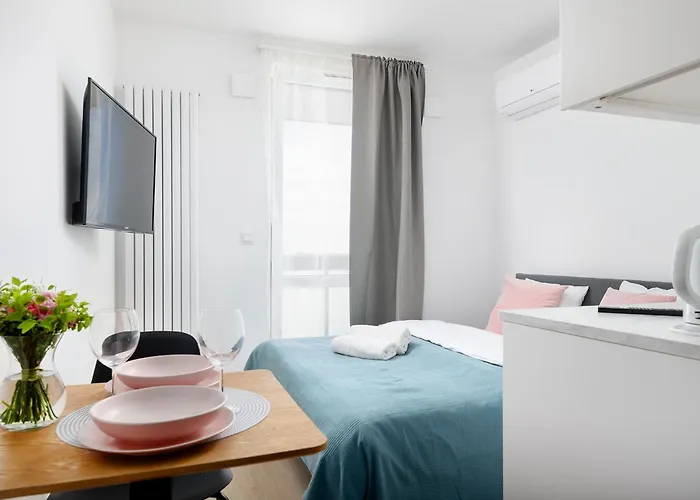 The property is equipped with self-catering amenities such as an electric kettle, a refrigerator, and glassware, providing guests with the opportunity to prepare their own meals. The nearest airport is Warsaw Frederic Chopin, 5 km from this apartment, and Mikolajska 02 bus station is merely 10 minutes' walk away.